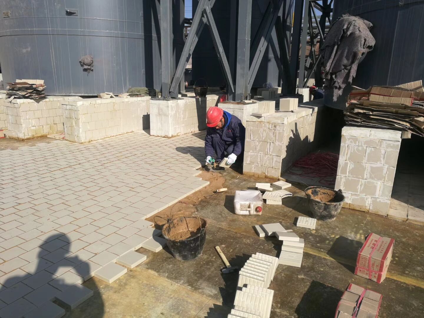 使用說明: 一般環(huán)氧樹脂,耐酸膠泥、耐酸水泥鋪貼,鋪貼時(shí)可根據(jù)上述生產(chǎn)廠家產(chǎn)品使用說明書進(jìn)行施工; 用草酸清洗混凝土表面,達(dá)到酸堿中和; 工業(yè)瓷耐酸磚,間縫寬度約8—10mm,間縫深度與磚厚相平為宜,以防泄露; 鋪貼完畢后應(yīng)用槽酸沖刷表面,以助于更加牢固。